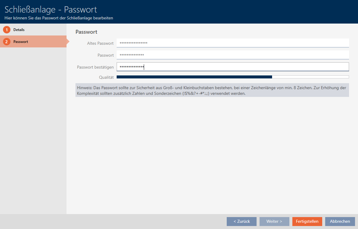 Låseanlæggets adgangskode er den allervigtigste adgangskode. Af sikkerhedsgrunde kan SimonsVoss heller ikke nulstille nogen komponenter uden låseanlæggets adgangskode eller backup. En generalnøgle findes heller ikke.