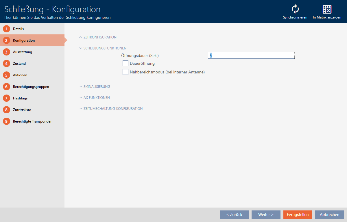 I fabriksindstilling programmerer AXM Lite låsene, så de indkobler i 5 sekunder. Men også andre indstillinger er tilgængelige: