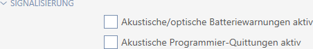 - Låsen vil ikke længere signalisere nogen batteriadvarsler eller akustiske programmeringsbekræftelser.