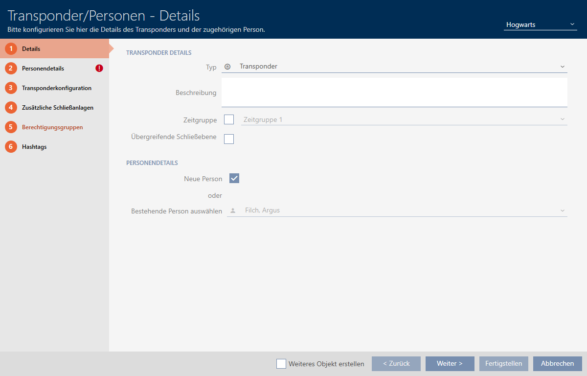 - Der Transponder wird in allen zugewiesenen Schließanlagen erstellt.