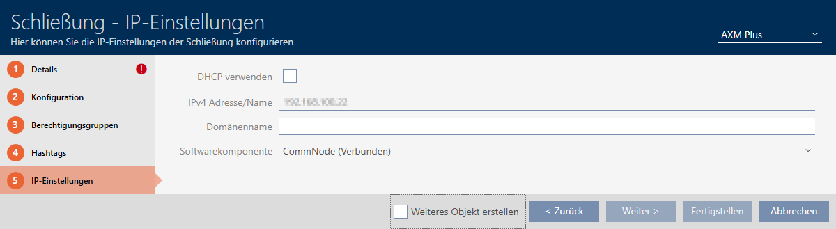 - Geben Sie die von der IT-Abteilung bereitgestellten IP-Einstellungen an (statische IPv4 Adresse/Name und ggfs. Domänenname oder aktivieren Sie die Checkbox ).