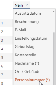 - Auswahlwerte (z.B. ), die in der Importdatei vorkommen, sind bereits angelegt (siehe z.B. Personengruppe erstellen).