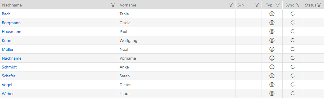 - Nach Abschluss des Imports sind die importierten Identmedien/Personen in der Liste der Identmedien zu sehen: