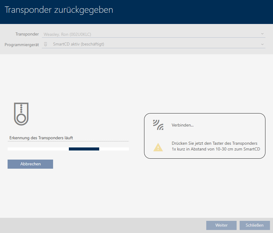 . - Assistent für die Identmedien-Rückgabe öffnet sich.