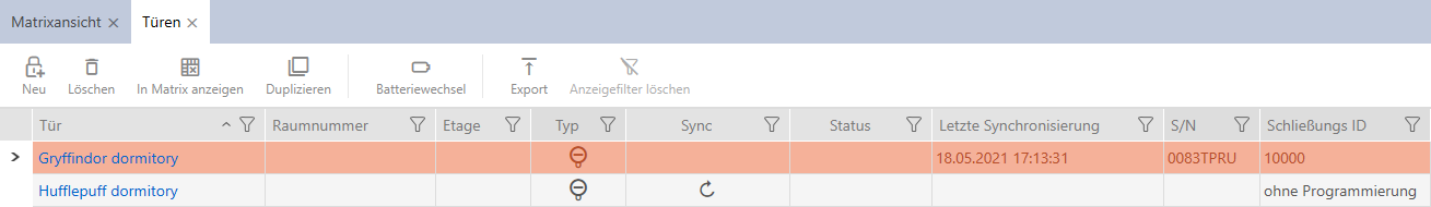 - Sortieren/Filtern Sie ggfs. die angezeigten Einträge mit