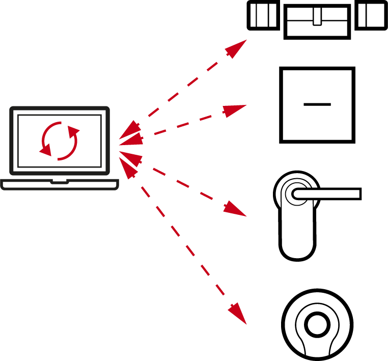 - Von der Datenbank in die Schließung / ins Identmedium, z.B. Berechtigungsänderungen