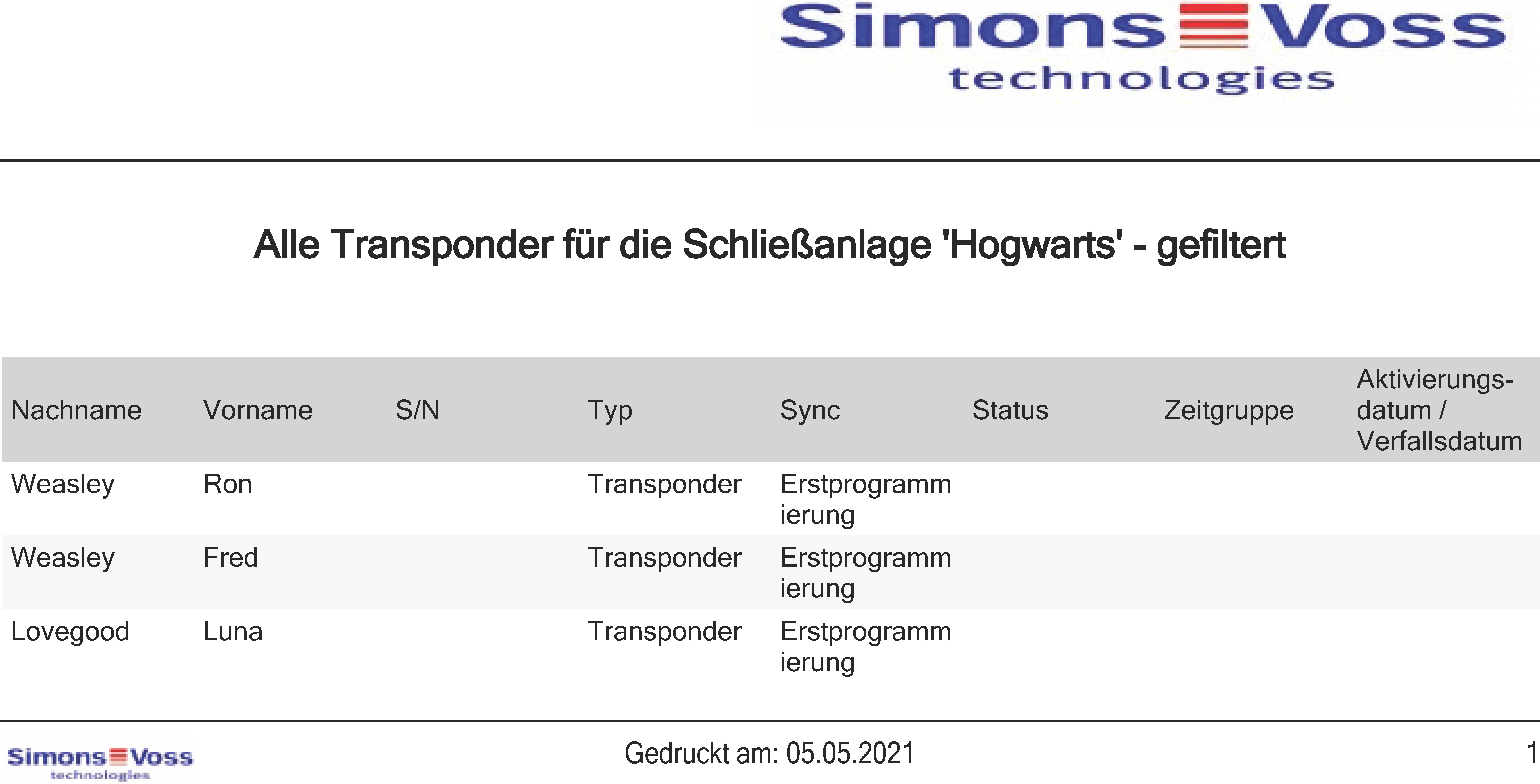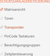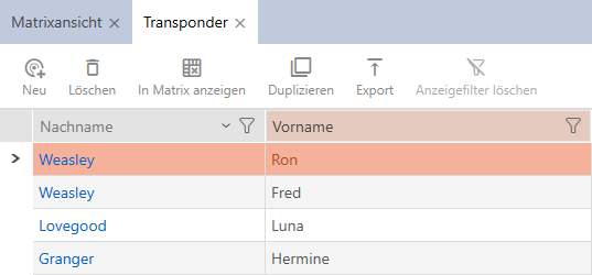 - The list with all identification media in the locking system will open.
