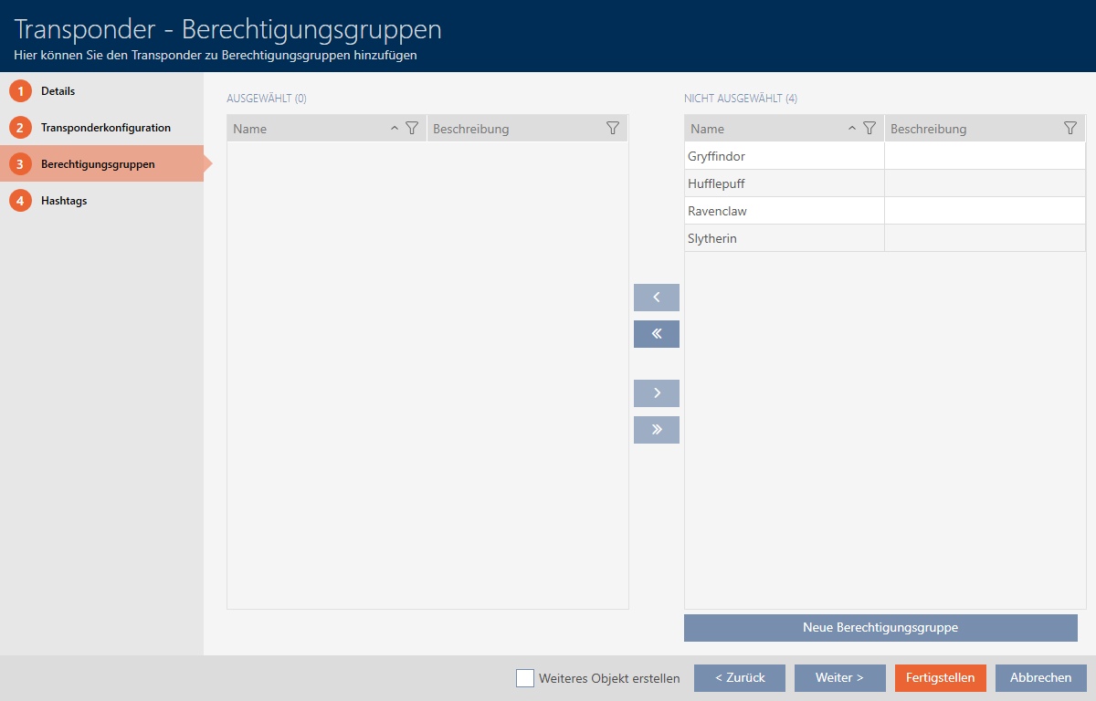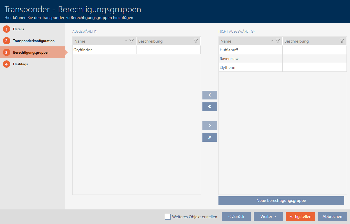 to move all displayed access levels. - The identification medium is assigned to the highlighted access levels.