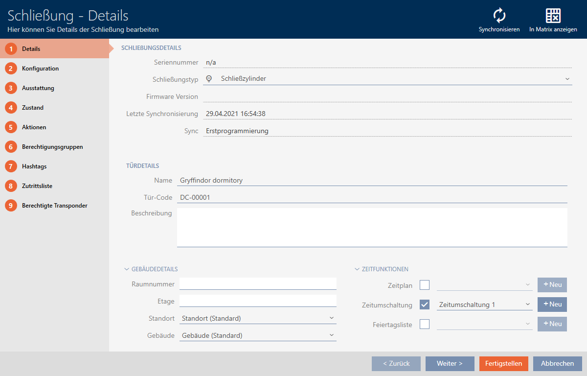 - Click on the locking device whose opening interval you wish to set.