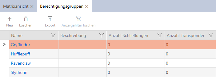 to sort/filter the displayed entries if required (see Sorting and filtering). - Select all identification media that you wish to add to the access level (Ctrl+click for individual media or Shift+click for multiple media).
