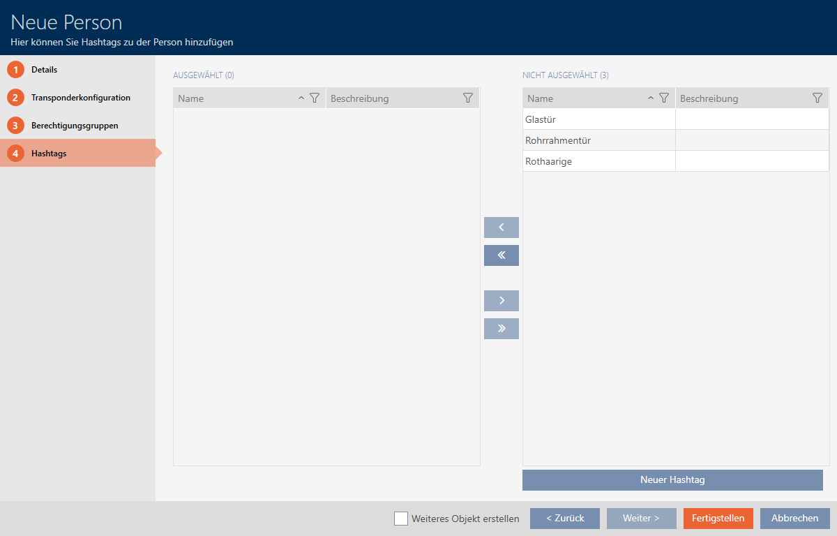 (voir Trier et filtrer). - Sélectionnez les hashtags souhaités dans la colonne de droite (Ctrl+clic de la souris pour en sélectionner un seul, Maj+clic de la souris pour en sélectionner plusieurs).
