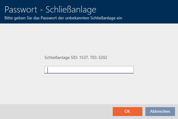 La case à cocher dans la colonne vous permet également de sélectionner de tels jeux de données. Étant donné que votre AXM Lite ne connaît pas le système de fermeture et donc pas le mot de passe de ce dernier, vous devez dans ce cas saisir le mot de passe du système de fermeture inconnu.