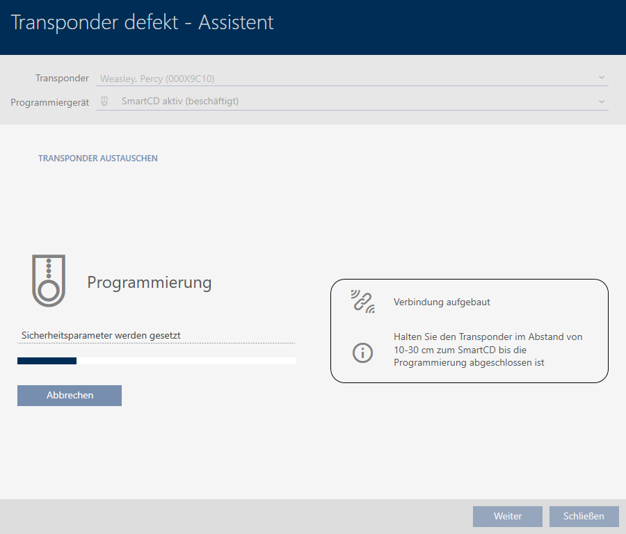 - L’assistant prépare la programmation du support d’identification de remplacement.