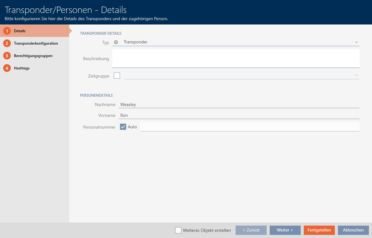 - Se il transponder deve essere utilizzabile solo per un periodo limitato: disattivate la casella di controllo . Inserite quindi la data di scadenza.