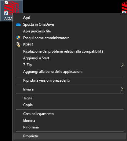 - Si apre la finestra Proprietà - AXM ... .