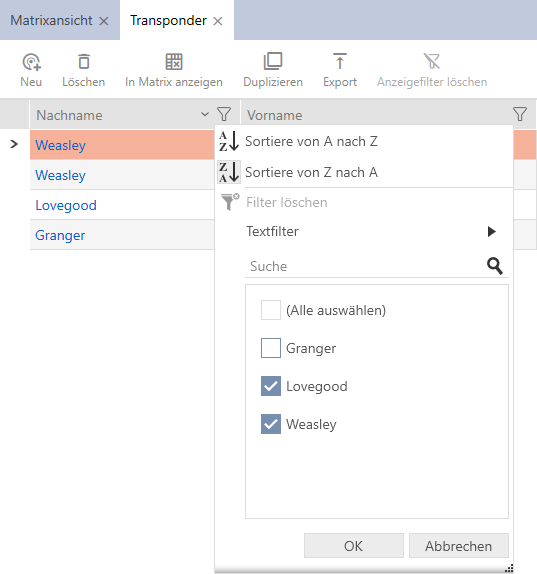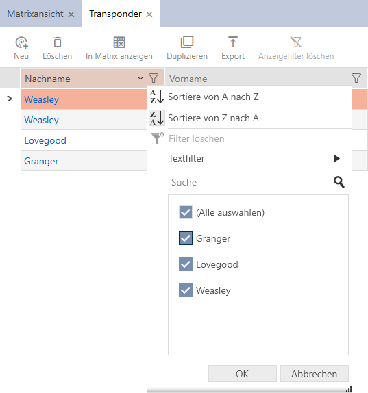 L’AXM Lite quindi vi fornisce funzioni per ordinare e filtrare.