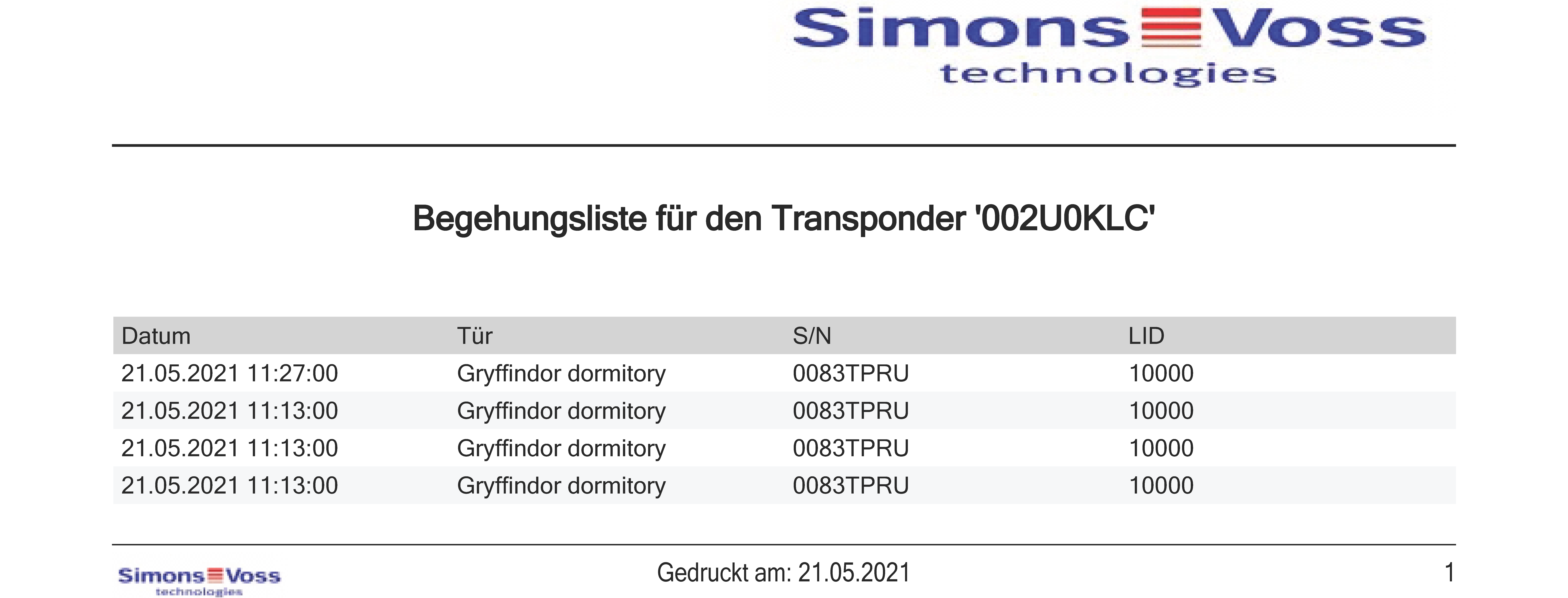 I vostri mezzi di identificazione possono su richiesta registrare su quali chiusure sono stati azionati (vedere Registrare gli accessi attraverso il mezzo di identificazione (elenco dei transiti)). In seguito, le voci memorizzate in questo elenco degli accessi vengono trasferite al database durante una sincronizzazione, per esempio (vedere Sincronizzazione di transponder/scheda (incl. lettura dell’elenco dei transiti)).