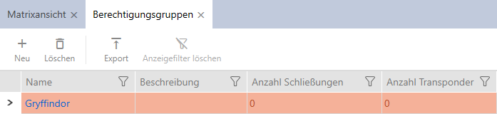 - Il nuovo gruppo di autorizzazioni viene inserito in elenco.