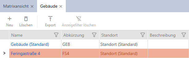 Nel database deve esserci almeno un edificio. L’AXM Lite crea quindi un edificio standard. Naturalmente potete creare altri edifici.