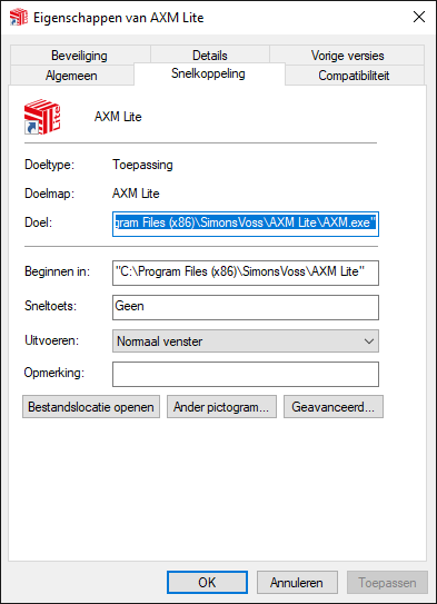 - Als u in de toekomst de AXM Lite via deze koppeling opstart, wordt de AXM Lite automatisch als systeembeheerder uitgevoerd.