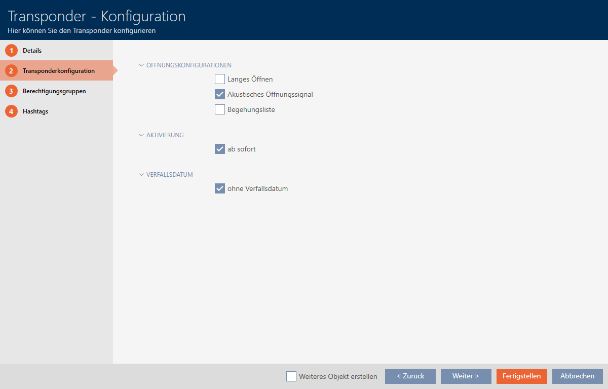 - Om låsen för det här identifikationsmediet ska vara öppna dubbelt så längs (fördubbling upp till max. 25 s): Markera kryssrutan .