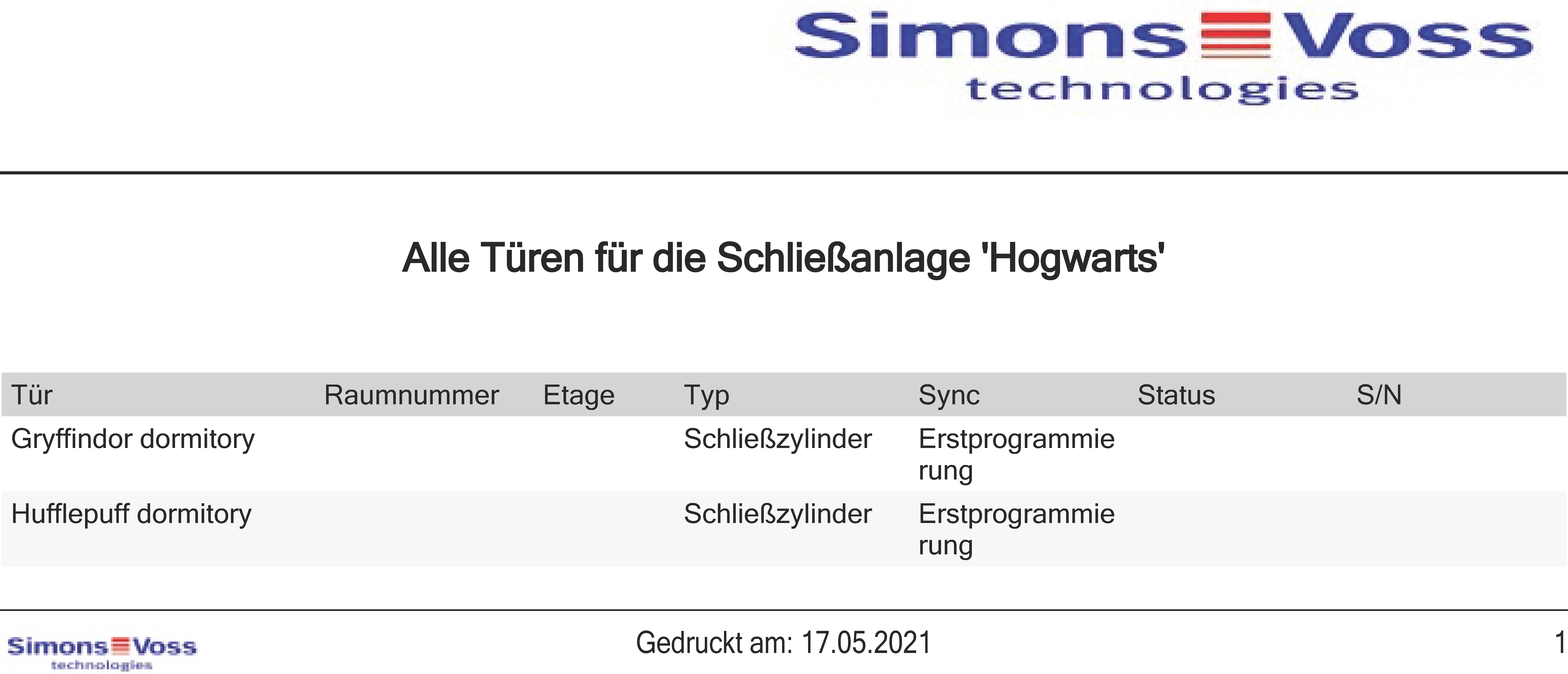Alla lås i låssystemet kan exporteras i pdf-format.