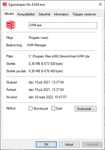 - Fönstret Egenskaper för AXM ... öppnas.