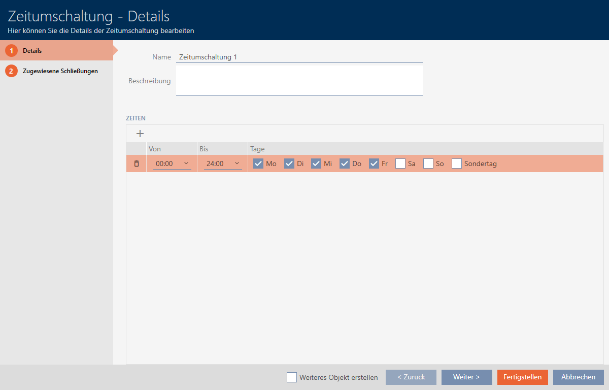 - Tidsomkopplingen är skapad och visas i listan. Fortsätt i förekommande fall med Koppla in och koppla ur lås med tidsomkoppling automatiskt.
