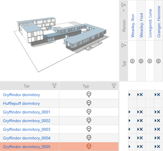 - Dørdetaljer (undtagen dørnummer, dette fortsættes automatisk med den justerbare forkortelse, se også Ændring af automatisk nummerering)