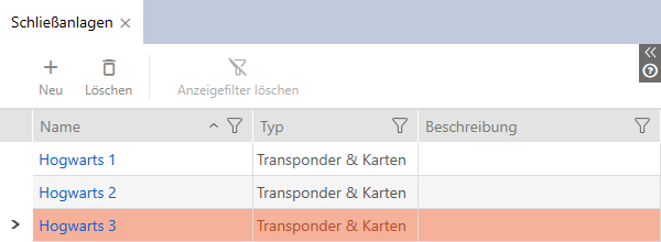 - Fanen åbner med en liste over alle låseanlæg i databasen.