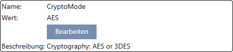 - CryptoMode: Krypteringsmetode for låseanlæggets data (kryptering af App-ID'ets indhold - anbefaling: AES)