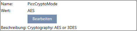- PiccCryptoMode: Generel krypteringsmetode (kryptering af hele kortet - anbefaling: AES)