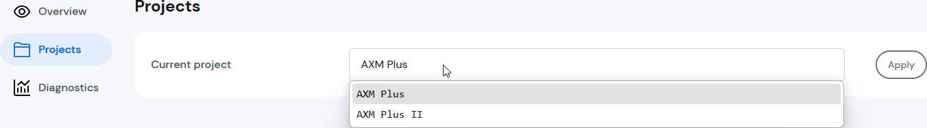 - Bestätigen Sie die Auswahl des Projekts mit der Schaltfläche Apply.