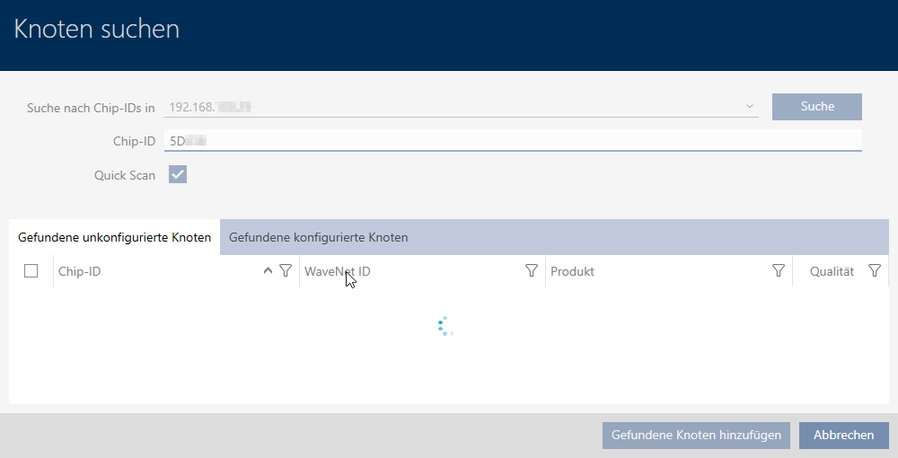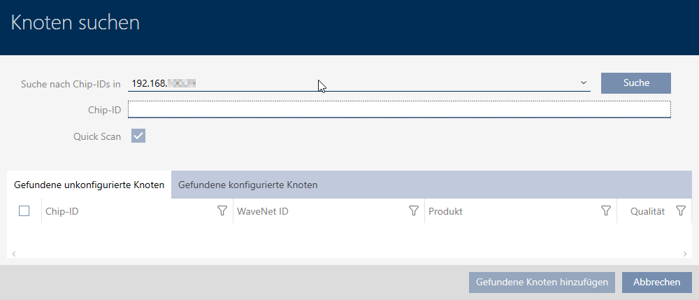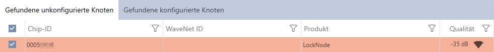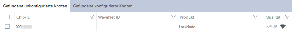 Die Suche ohne Einschränkung durch eine Chip-ID wird alle LockNodes finden, die dieser RouterNode erreicht. So können Sie viele LockNodes auf einmal hinzufügen.