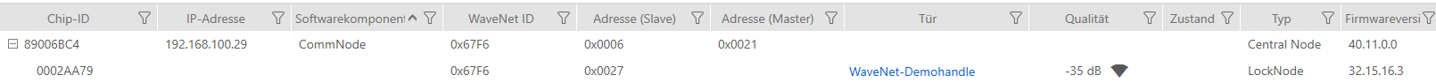 Nach dem Synchronisieren wird die Schließung zusammen mit dem LockNode angezeigt: