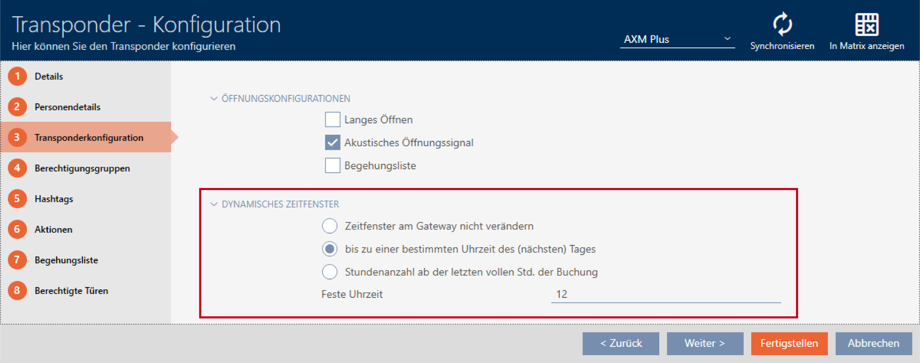 Dynamisches Zeitfenster einrichten (Zeitbudget) - AXM Plus