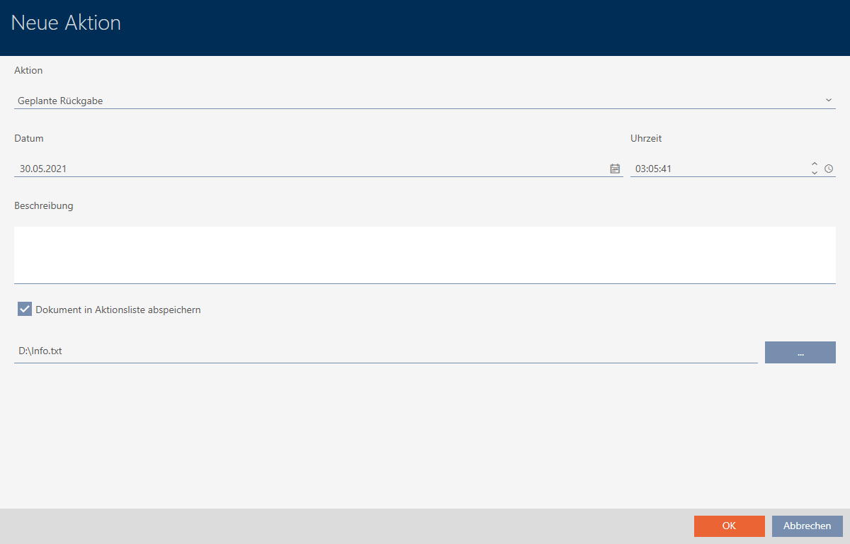Um den Überblick darüber zu behalten, wann welche Identmedien zurückgegeben werden sollen, können Sie in der Aktionsliste einen entsprechenden Vermerk eintragen.