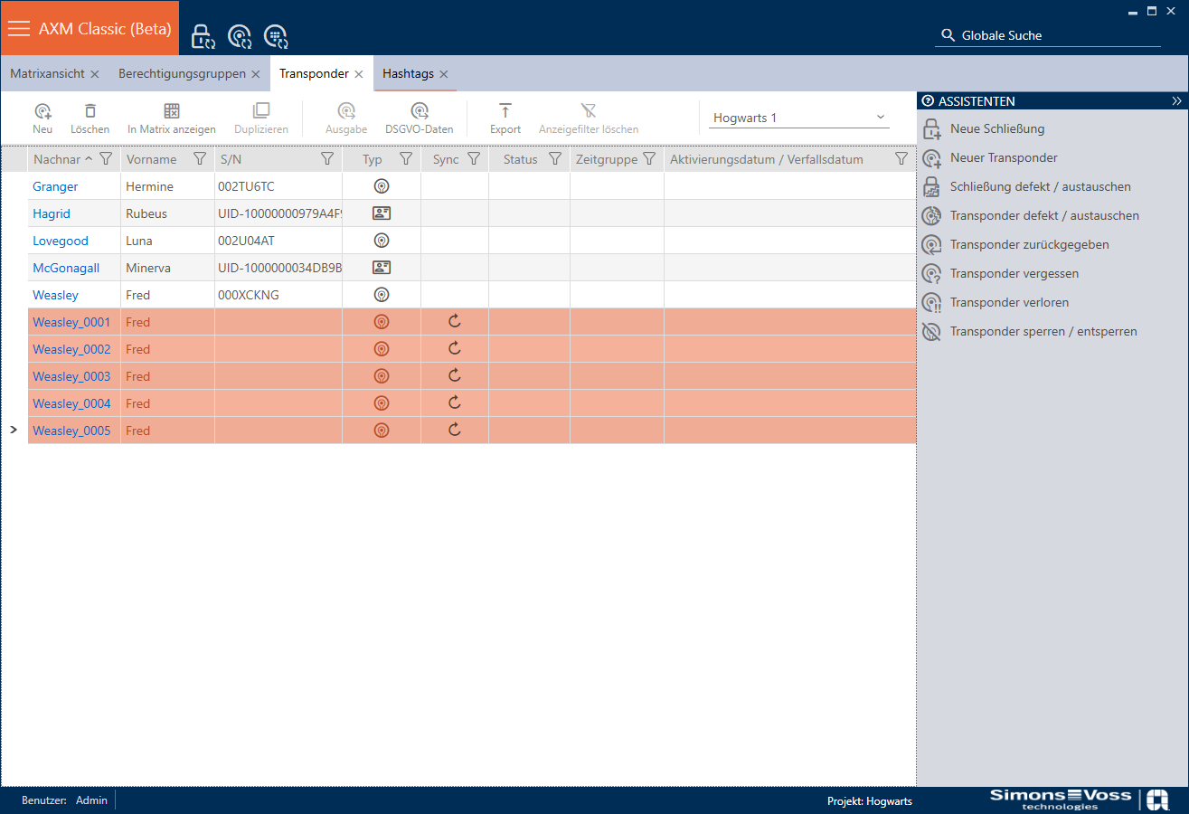 Mehrere Identmedien über den Tab löschen - AXM Plus