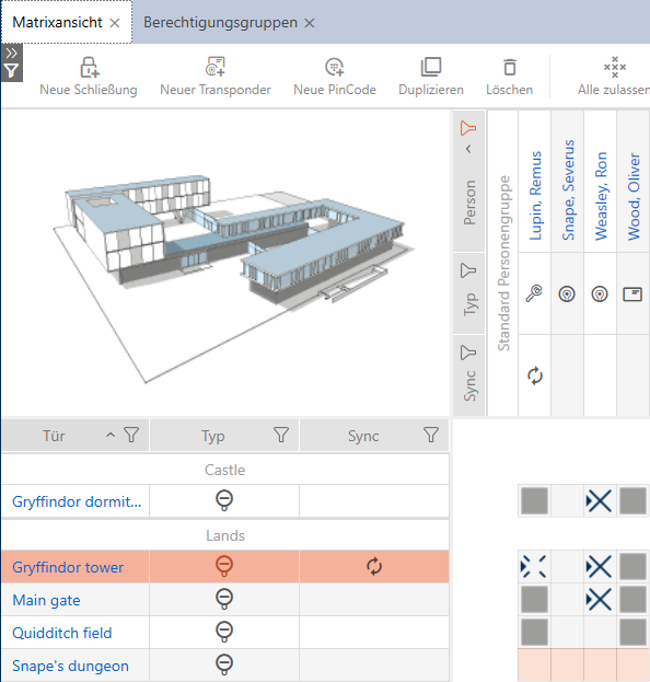 - Alle Identmedien in dieser Berechtigungsgruppe sind an allen Schließungen in dieser Berechtigungsgruppe berechtigt.