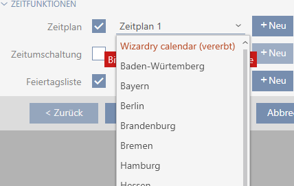 - Select the public holiday list for your locking device from the drop-down menu.
