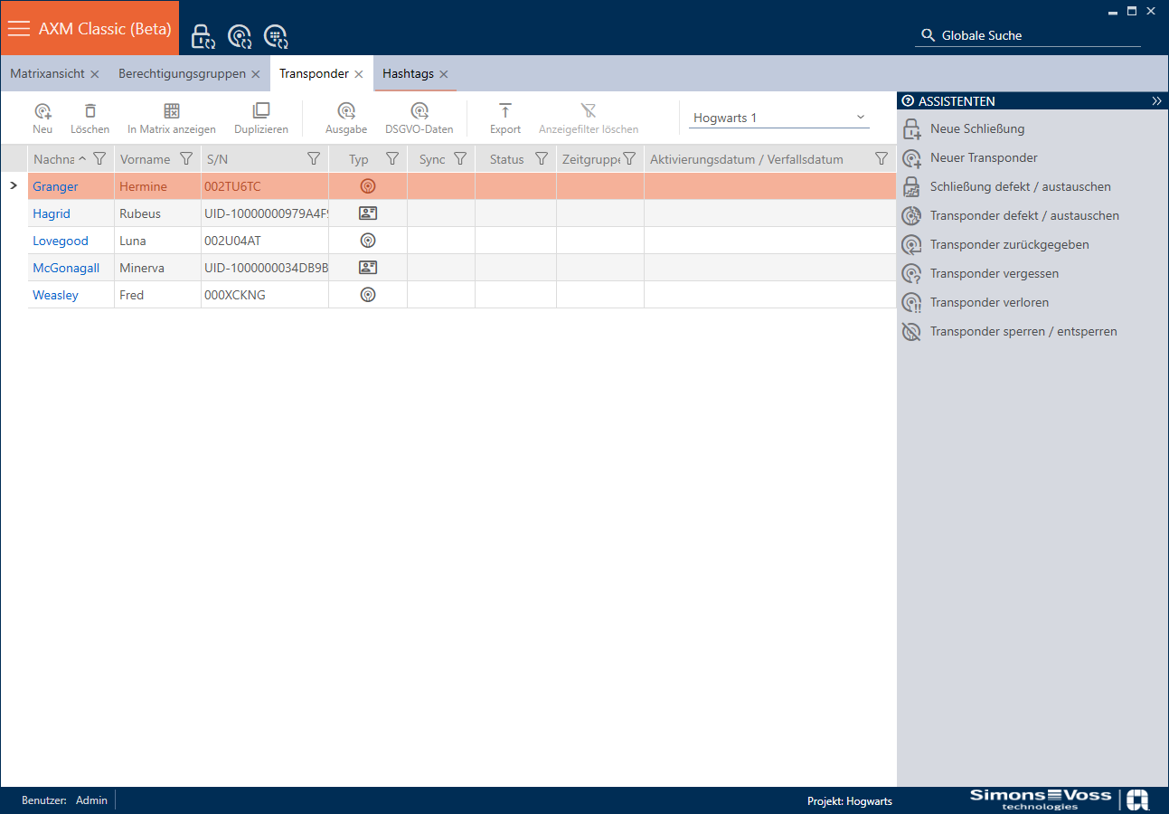 - Les supports d’identification à supprimer sont déprogrammés ou réinitialisés (réinitialiser, voir Réinitialiser les transpondeurs/cartes).