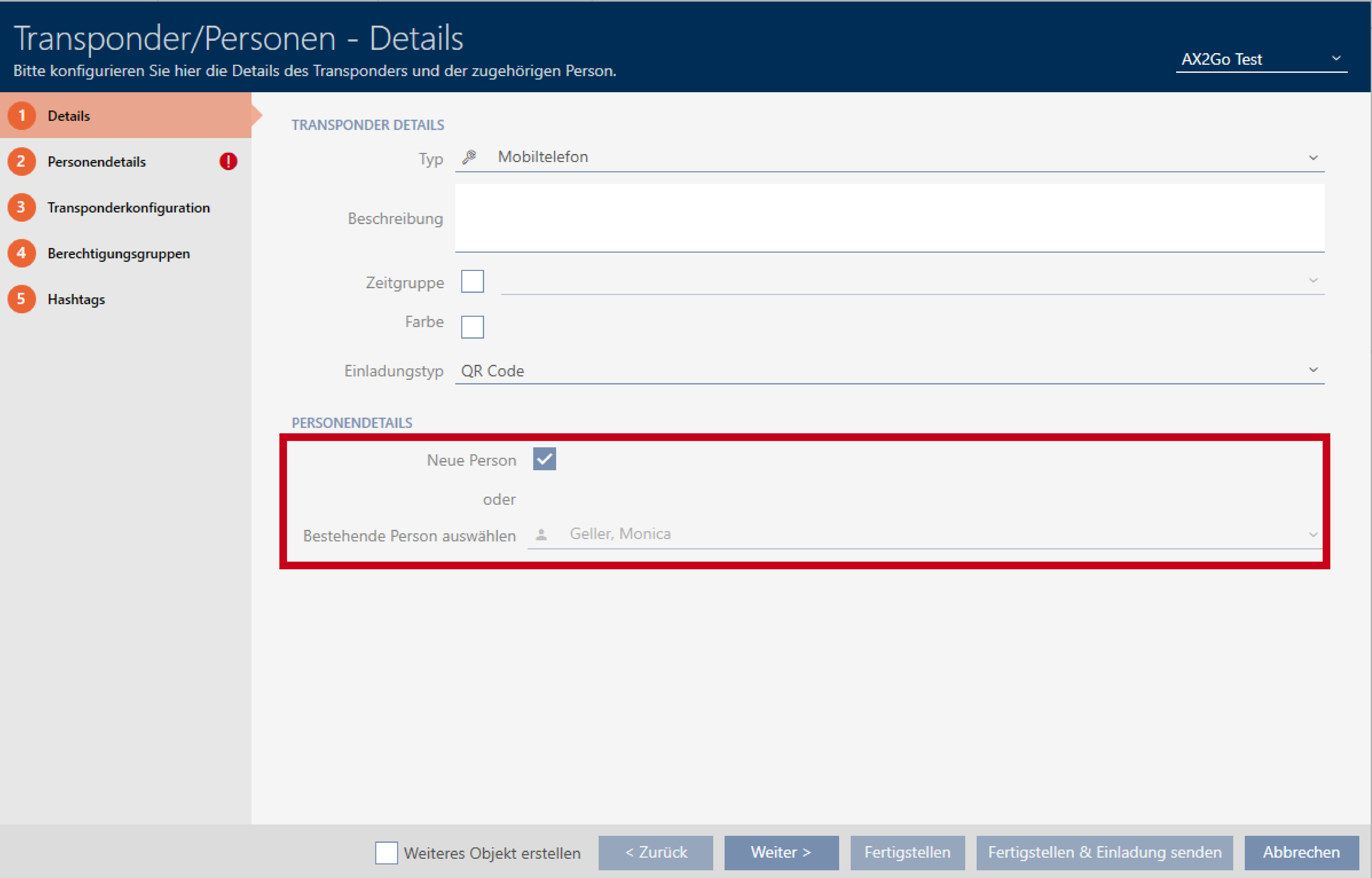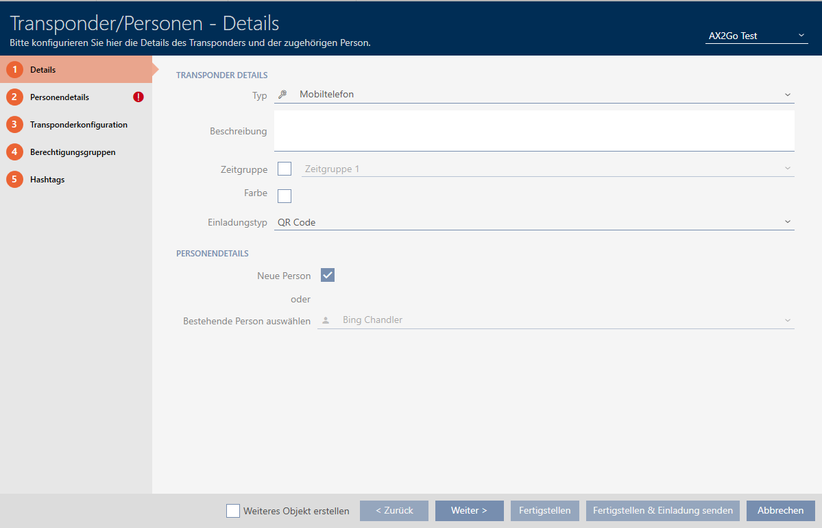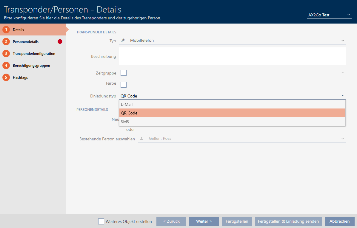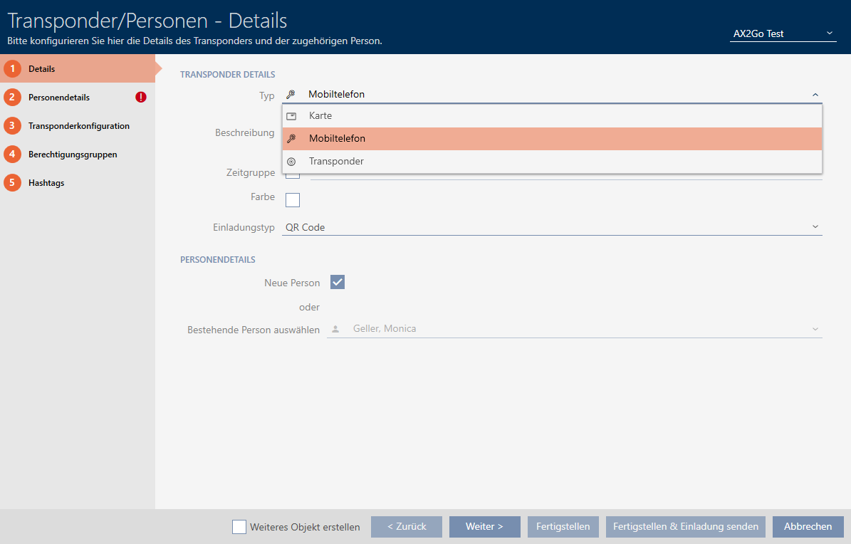 Als beheerder van het sluitsysteem kunt u ook mobiele sleutels naar gebruikers sturen, die als toegangsrechten in de AX2Go-app worden opgeslagen. Het aanmaken van sleutels voor AX2Go werkt op dezelfde manier als het aanmaken van transponders.