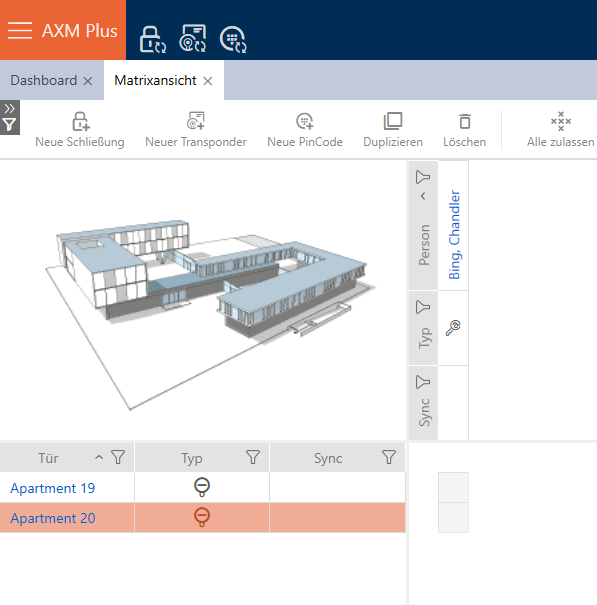 - Klik in de matrix-afbeelding van uw sluitsysteem op de button