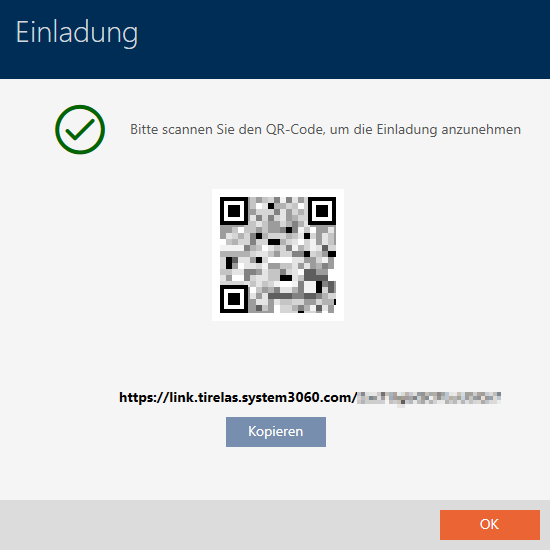 - U hebt de uitnodiging met succes verzonden en een AX2Go-sleutel aangemaakt.