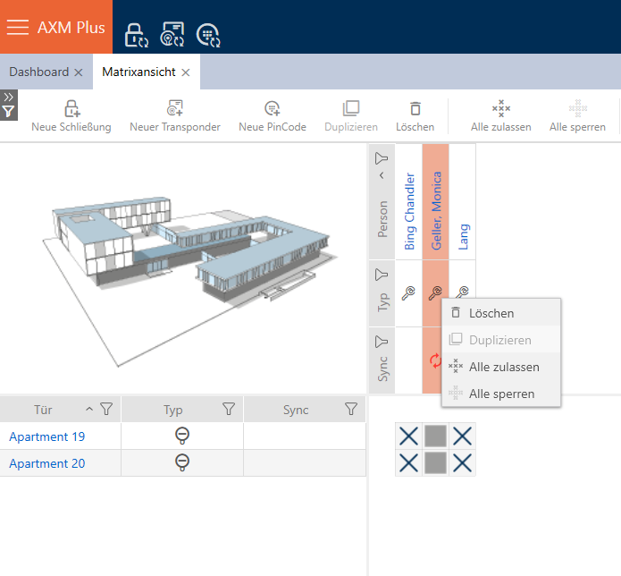 Na het blokkeren van de sleutel kunt u deze ook wissen en dus volledig verwijderen. Ga als volgt te werk om de AX2Go-sleutel uit de matrixweergave te verwijderen: