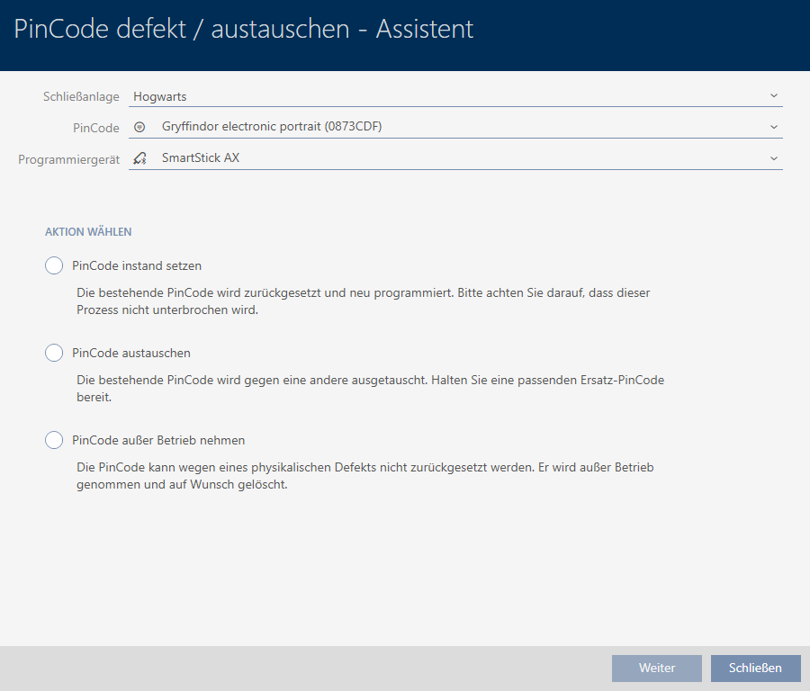 - De wizard voor de behandeling van een defect PinCode-toetsenbord gaat open.