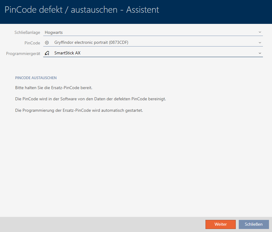 - De wizard voor de behandeling van een defect PinCode-toetsenbord gaat open.