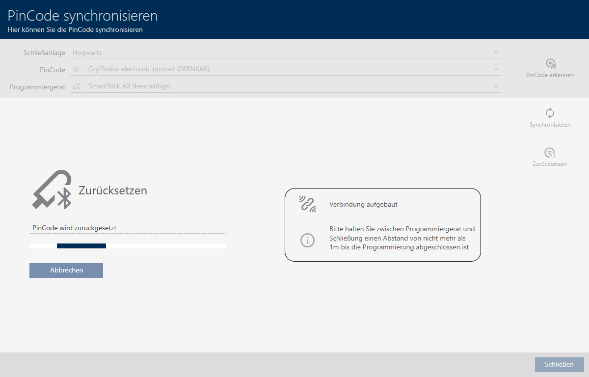Uw AXM Plus kan ook PinCode-toetsenborden resetten die niet in hetzelfde project zijn aangemaakt. In dit geval kent uw AXM Plus echter het gebruikte wachtwoord van het sluitsysteem niet.