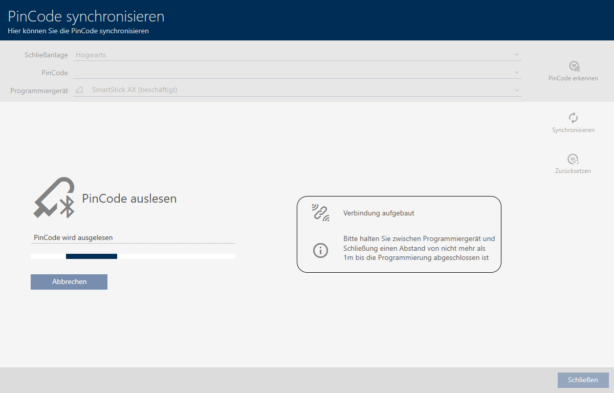 - Geschikt programmeerapparaat aangesloten (SmartStick AX voor PinCode-toetsenbord AX, SmartCD2.G2 voor PinCode-toetsenbord 3068)
