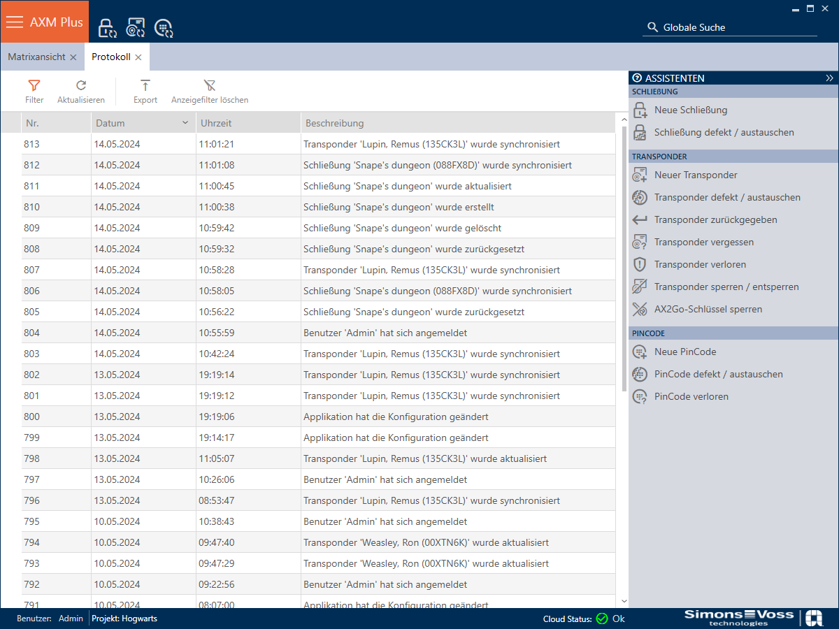 In de AXM Plus wordt elke wijziging en elke instelling in de database geregistreerd. Zo kunt u altijd nagaan wie op welk moment iets aan de database heeft veranderd.